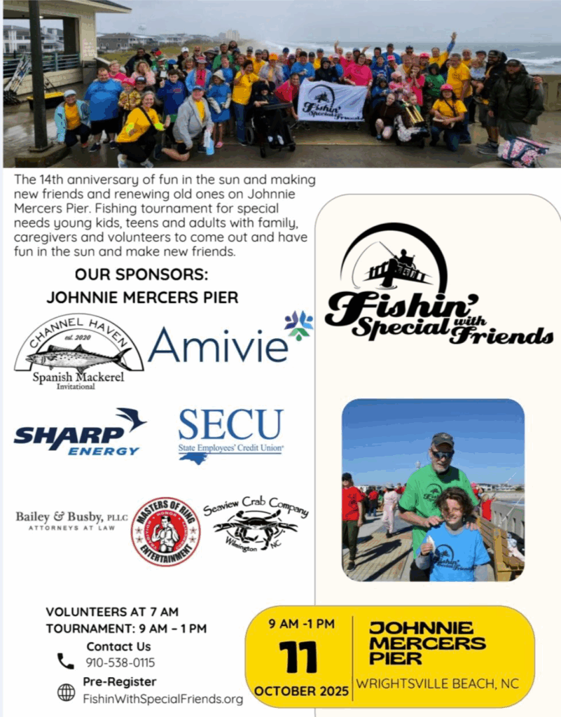 One of the largest turnouts to date for Fishin’s with Special Friends. Volunteers were eager to assist all of our friends that came out to enjoy a day of fishing and what a day it was. Fish were plentiful and laughter and fun were abound. Each participate was also gifted a family fishing pass to Johnnie Mercers Pier so they can keep fishing throughout the year. Already looking forward to 2025.
